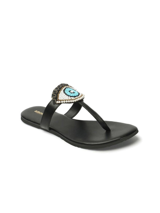 Dhiyona AK Black & Blue Evil Eye Embellished Classic T-Strap Flats