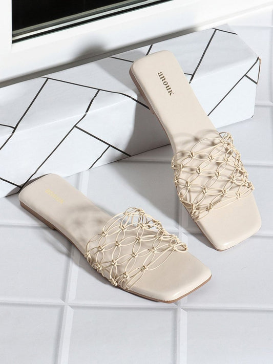 Dhiyona AK Women Open Toe Flats with Laser Cuts