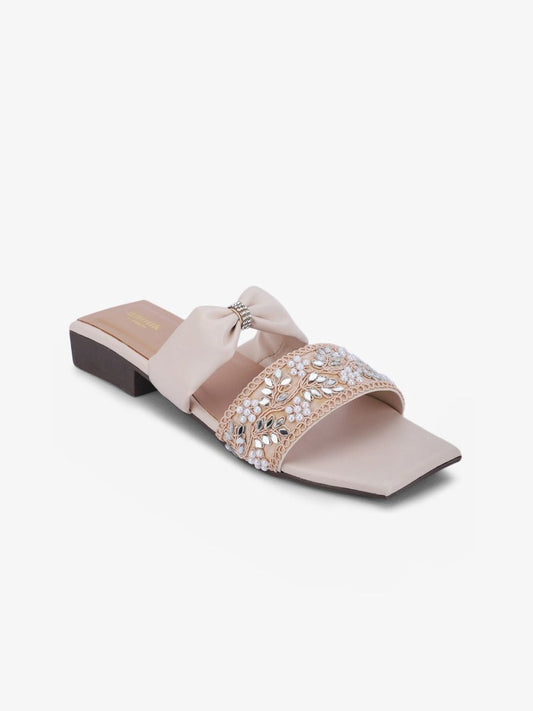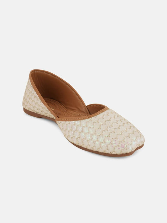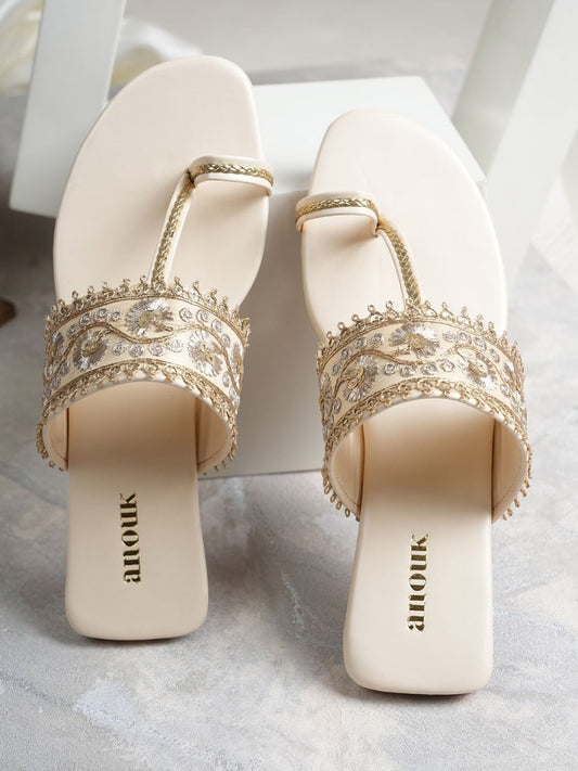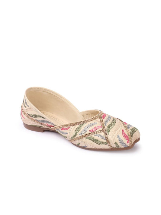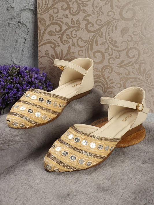 Dhiyona AK Cream-Coloured Embellished Ethnic Open Toe Flats