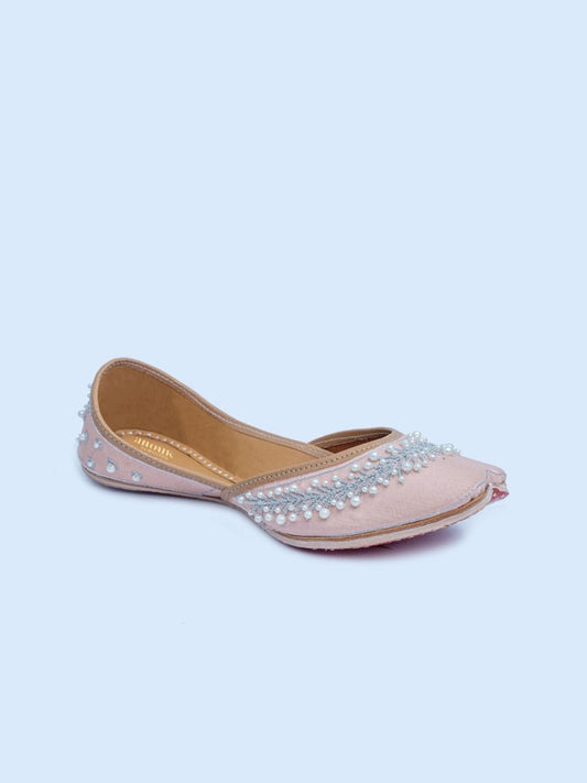 Dhiyona AK Peach-Coloured Embellished Ethnic Mojaris