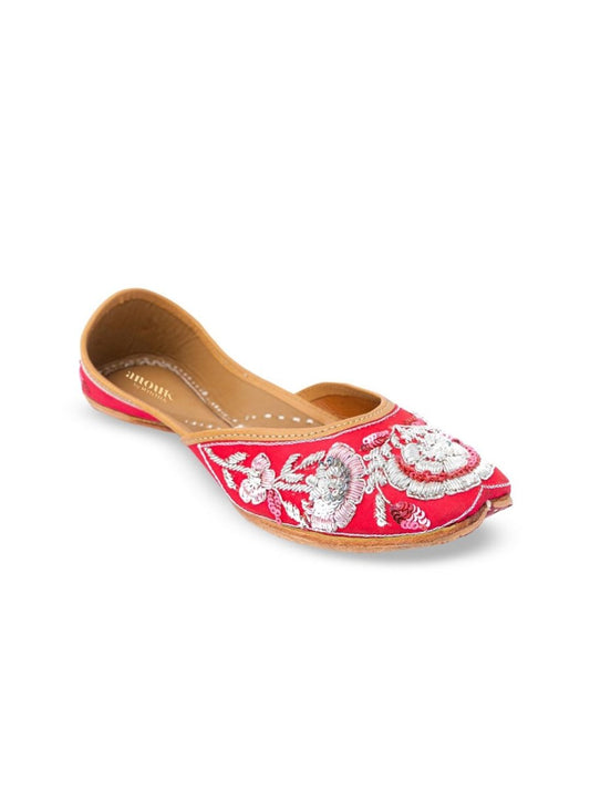 Dhiyona AK Women Red & Silver Toned Ethnic Embellished Mojaris