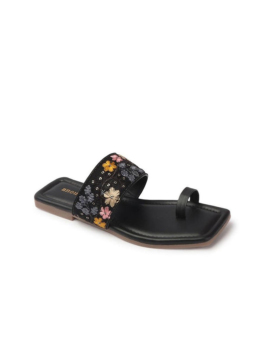Dhiyona AK Floral Embellished Embroidered Open One Toe Flats