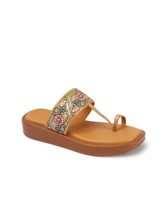 Dhiyona AK Peach-Coloured Ethnic Embroidered Open Toe Flats