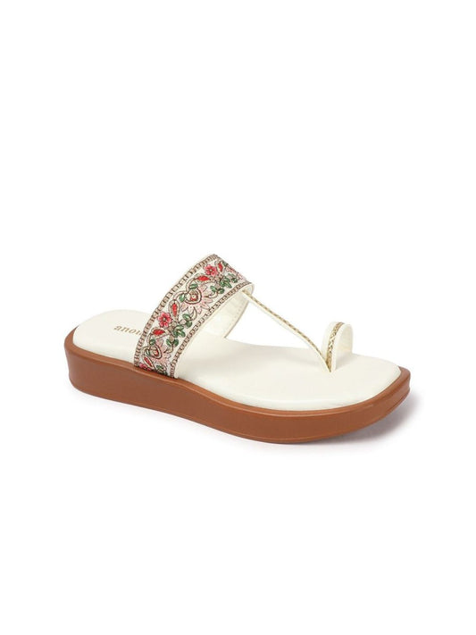 Dhiyona AK Dhiyona AK White Embellished One Toe Ethnic Flats