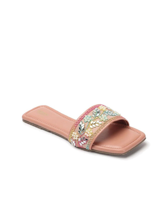 Dhiyona AK Peach-Coloured Embellished Open Toe Flats