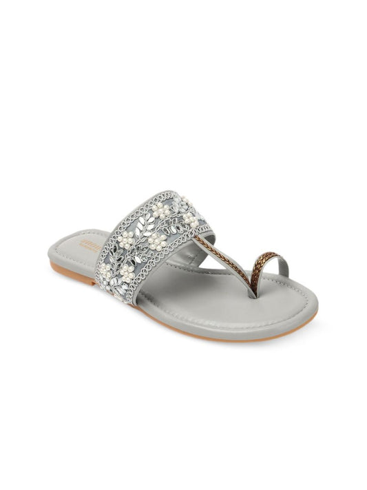 Dhiyona AK Grey Ethnic Embellished Open Toe Flats