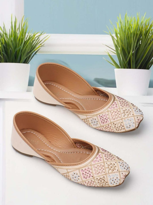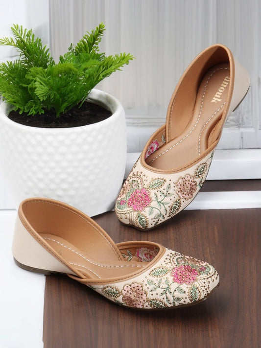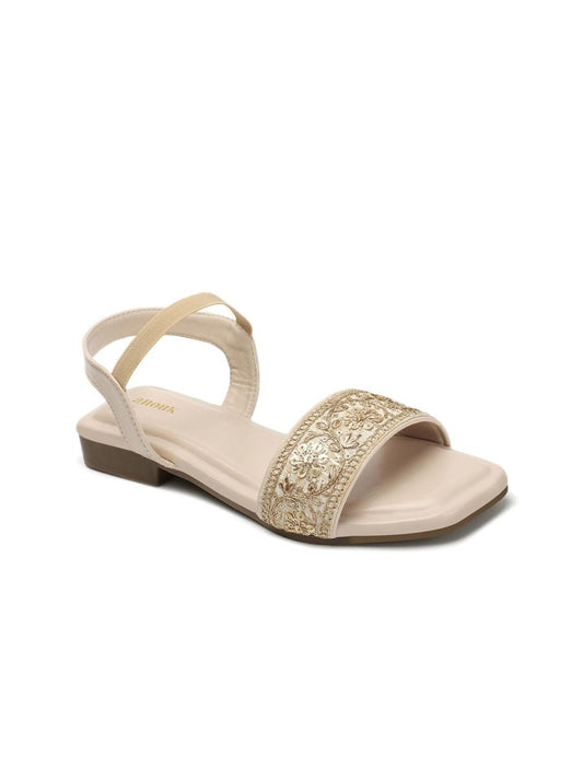Dhiyona AK Beige Ethnic Embellished Open Toe Flats