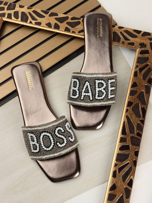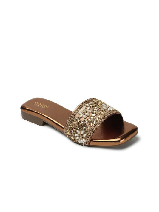 Dhiyona AK Copper-Toned Embellished Open Toe Flats