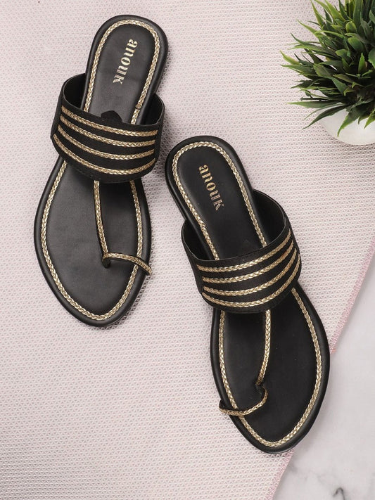 Dhiyona AK Women Striped Ethnic One Toe Flats