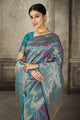Dhiyona GR Women's Aroma Misty Teal Blue Woven Banarasi Art Silk Saree
