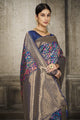 Dhiyona GR Women's Aroma Peacock Blue Woven Banarasi Art Silk Saree