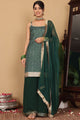 Teal & white , gold toned solid Kurta with Trousers with dupatta