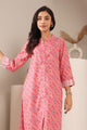 Coral, yellow and white printed kurta with trouser