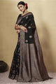 Dhiyona GR Women's GJ Black Berry Grease Black Zari Woven Design Cotton Blend Saree