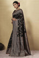 Dhiyona GR Women's GJ Black Berry Soot Black Zari Woven Design Cotton Blend Saree