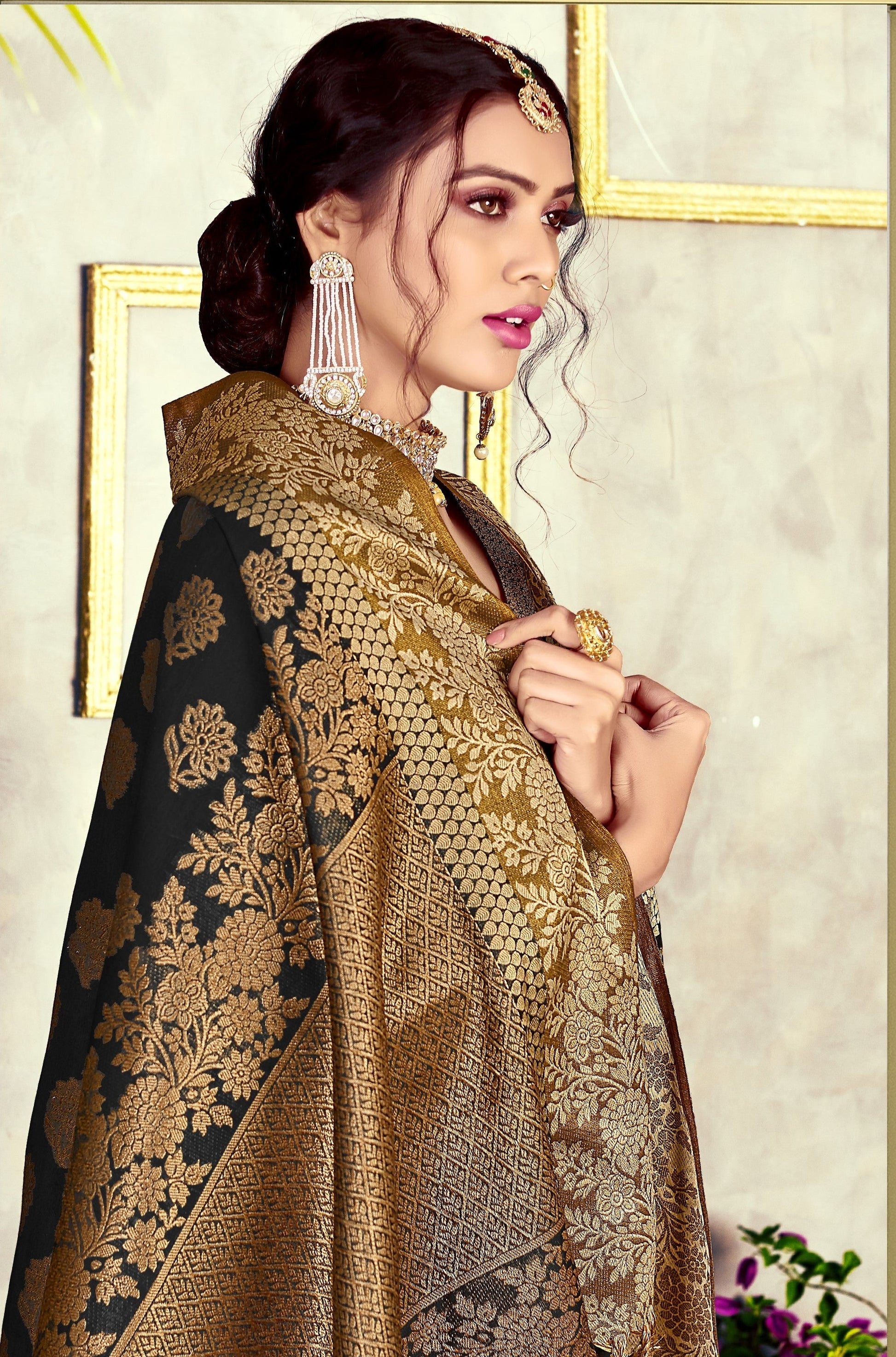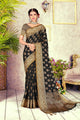 Dhiyona GR Women's Black Diamond Crow Black Zari Woven Design Cotton Blend Saree