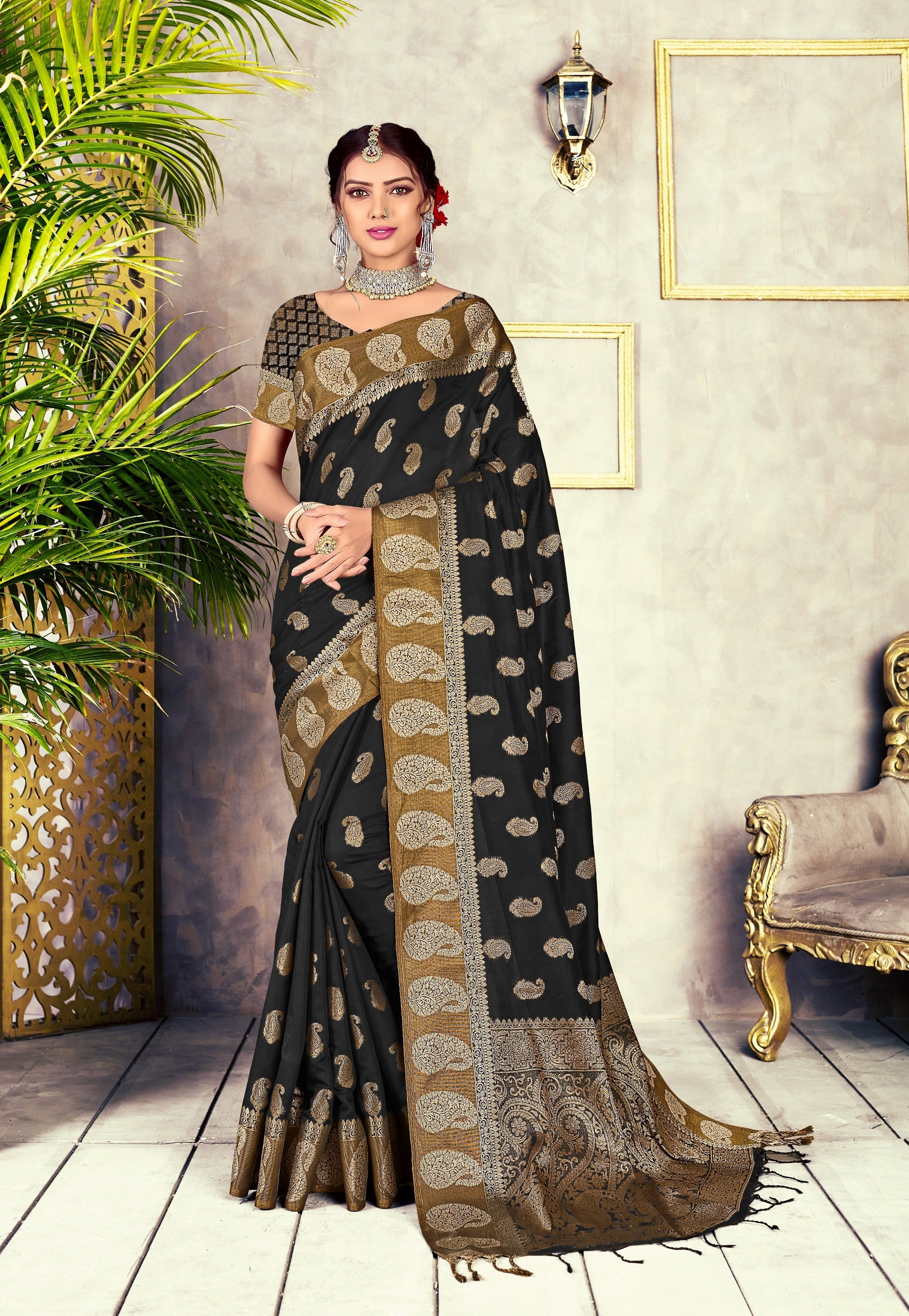 Dhiyona GR Women's GJ Black Diamond Jade Black Zari Woven Design Cotton Blend Saree