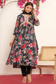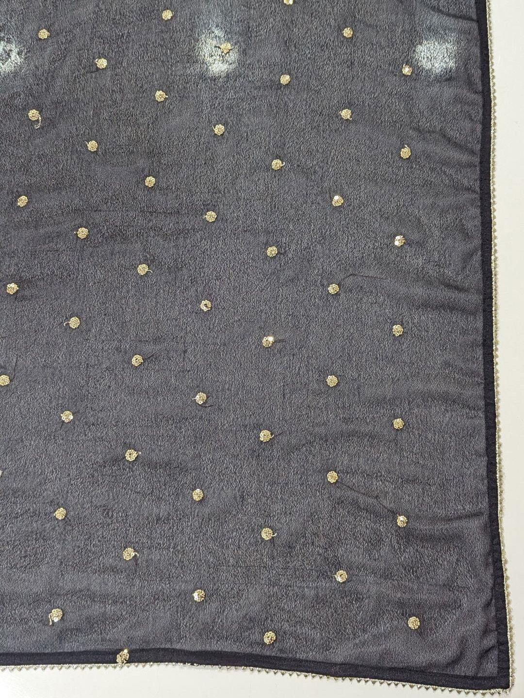 Dhiyona VA Women'sBlack Gotta Patti Floral Embroidered V-Neck Empire Kurta With Trousers & Dupatta