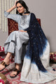 Blue, gold and navy blue embroidered Kurta with trousers with dupatta