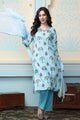 Dhiyona IS Women's Blue Ethnic Motifs Printed Mirror Work Pure Cotton Kurta With Trousers & Dupatta