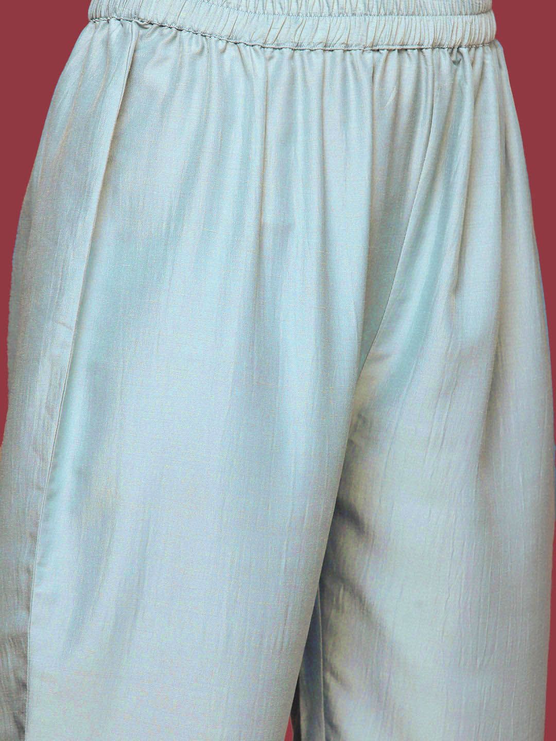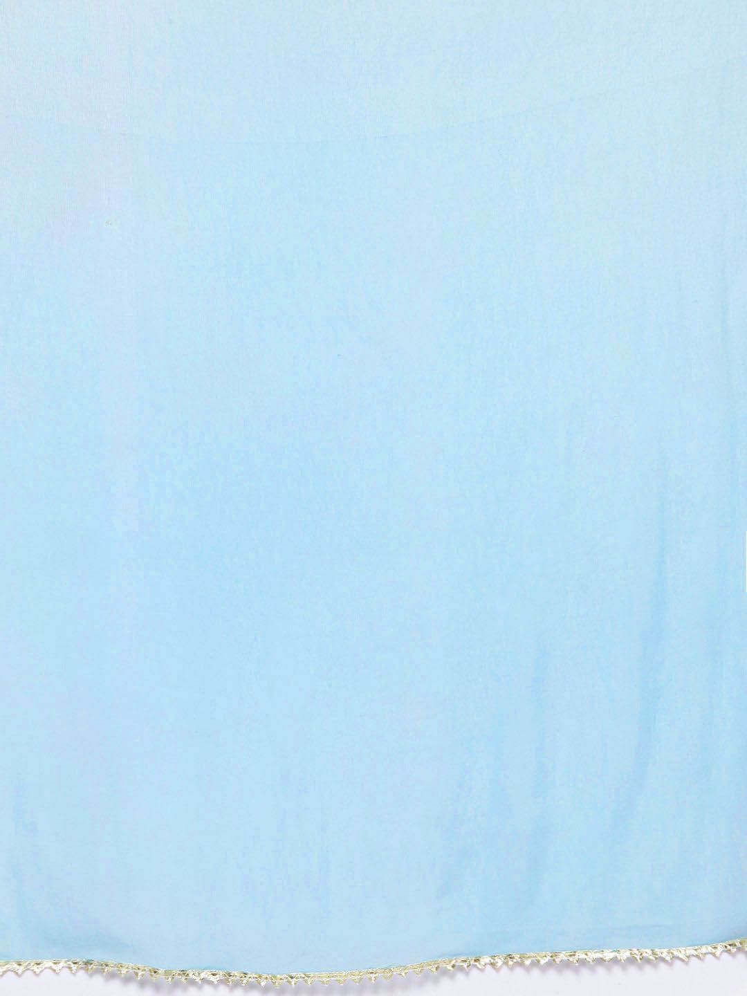 Dhiyona VA Women'sBlue Floral Embroidered Mirror Work Straight Kurta With Trousers & Dupatta