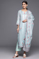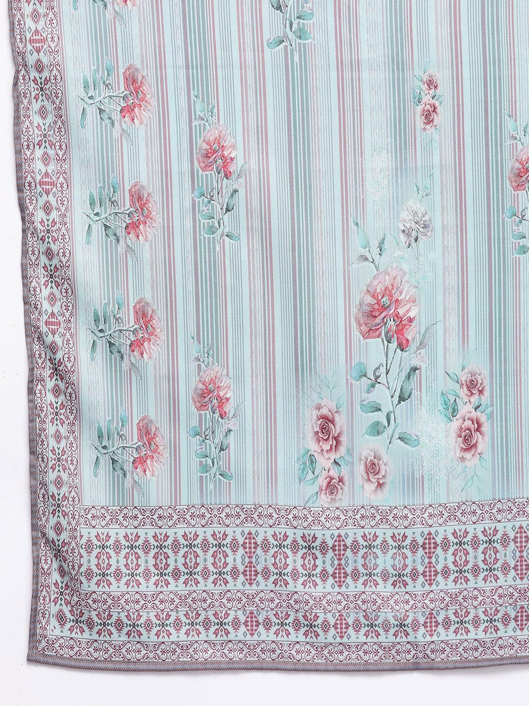 Dhiyona VA Women'sBlue Floral Printed & Striped Round Neck Straight Kurta with Trousers & Dupatta