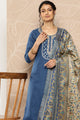 Dhiyona VA Women'sBlue Yoke Embroidered Kurta with Trouser and Dupatta