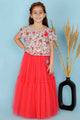 Girls Ethnic floral print choli with Tiered Net Ghaghara set
