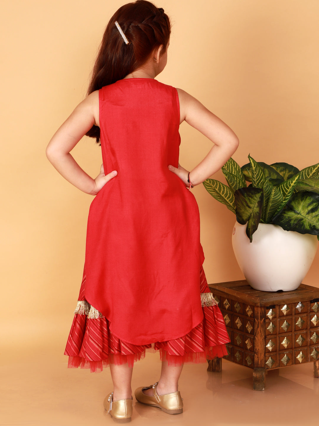 Girls Stylish Gold Embroidered cape with viscose Gold Printed Dress