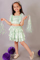 Girls Coord sets, Stylish Foil printed Ruffle sleeve Top with Tiered Skirt
