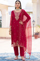 Dhiyona CH Embroidered Round Neck Thread Work Kurta With Trousers & Dupatta