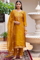 Mustard yellow embroidered Kurta with Trousers with dupatta
