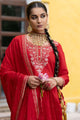 Red and gold toned embroidered Kurta with Trousers and dupatta