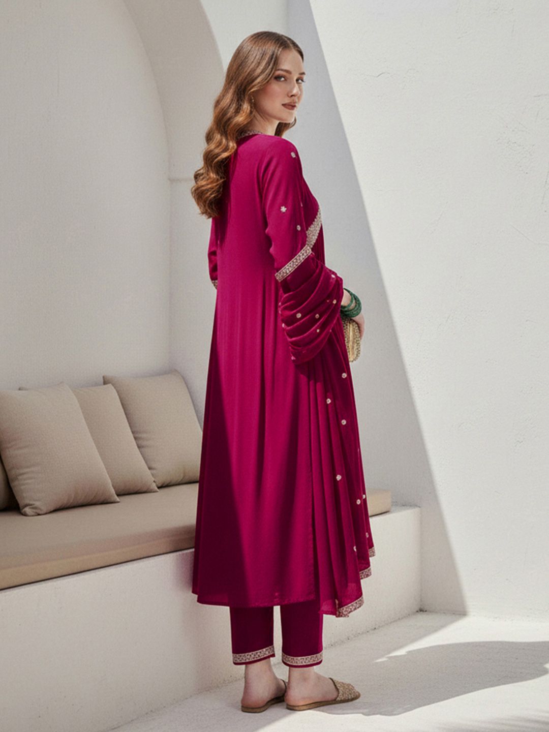 Dhiyona CH Women Ethnic Motifs Embroidered Panelled Thread Work Kurta with Trousers & With Dupatta