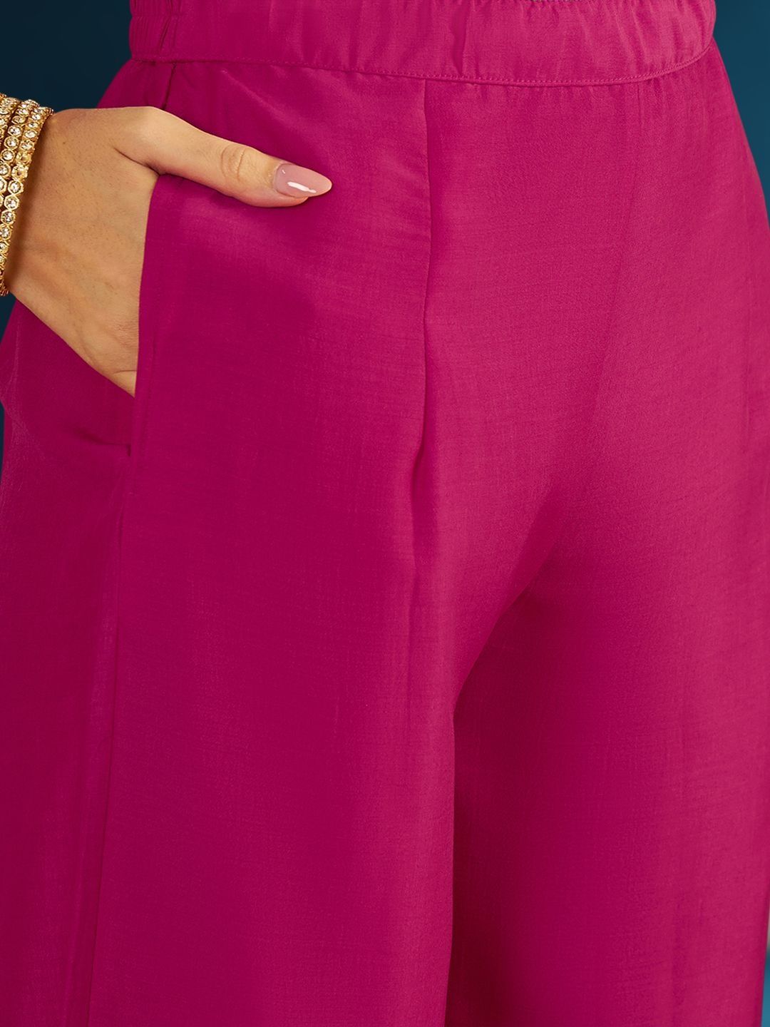 Pink embroidered Kurta with Trousers