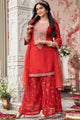 Red embroidered Kurta with Sharara with dupatta