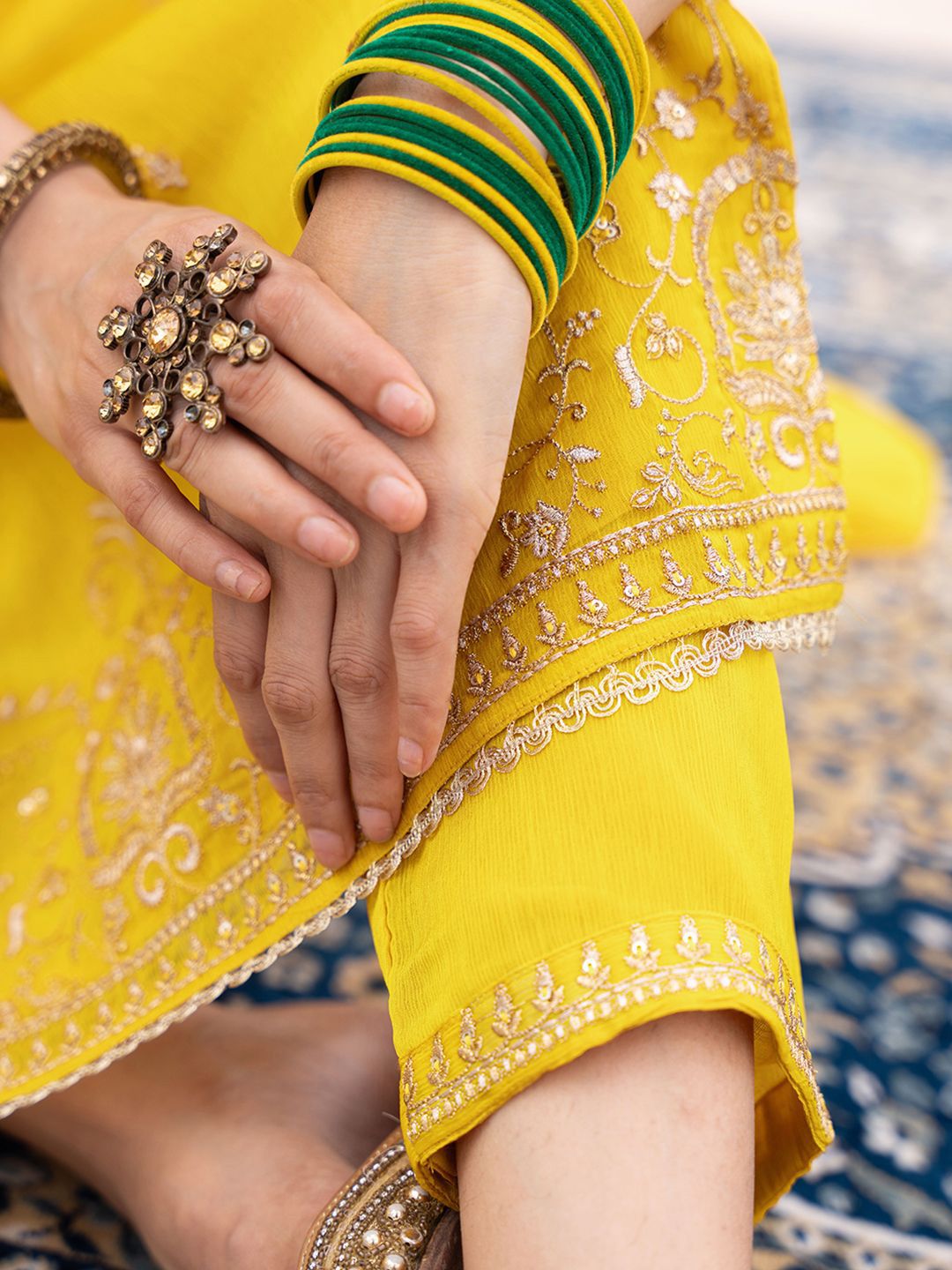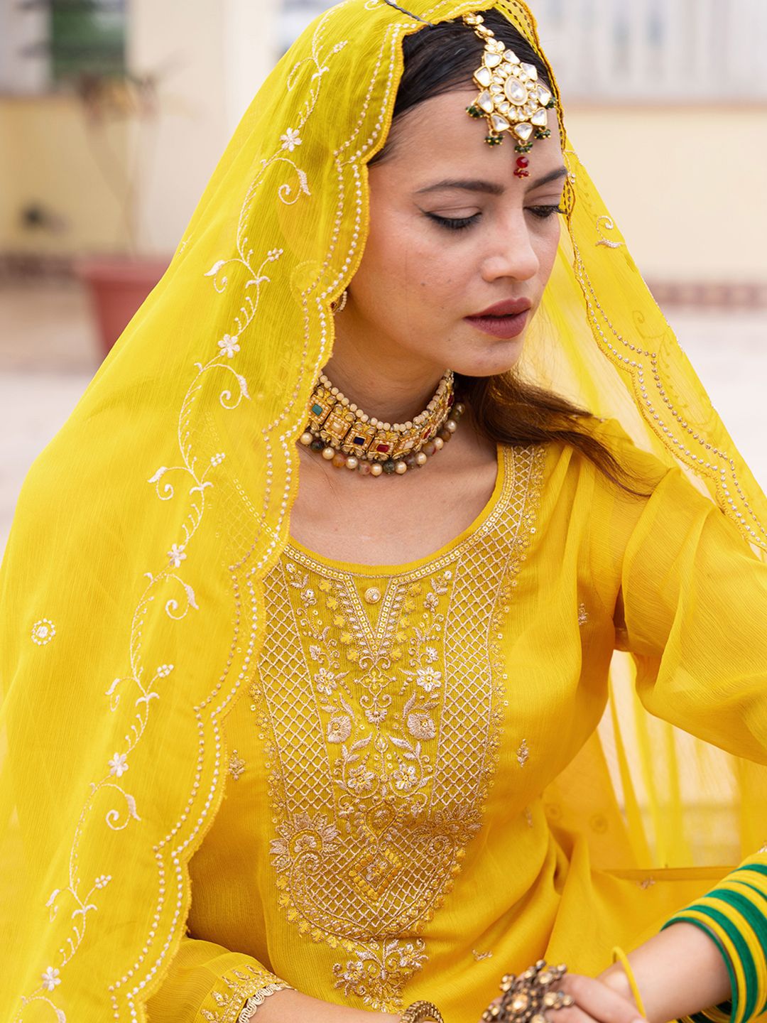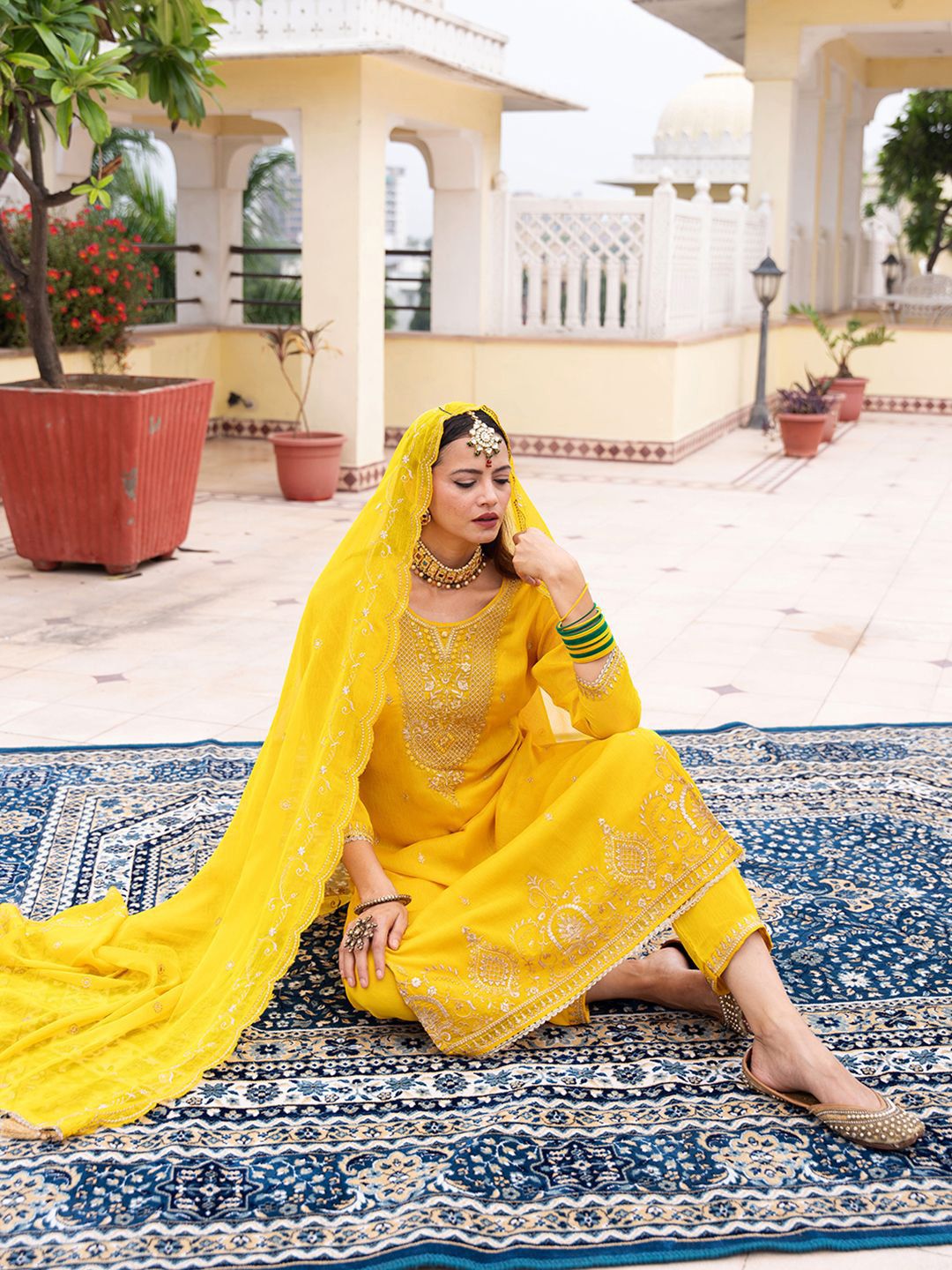 Dhiyona CH Women Ethnic Motifs Embroidered Thread Work Kurta with Trousers & Dupatta