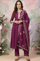 Purple embroidered Kurta with Trousers with dupatta
