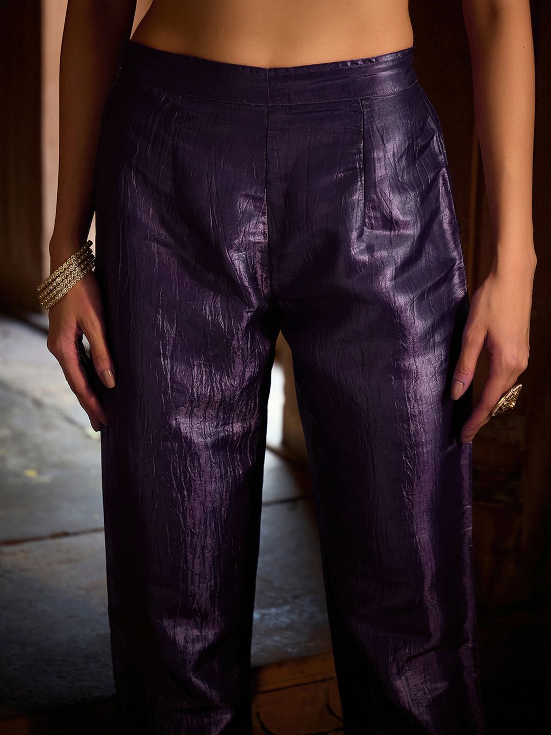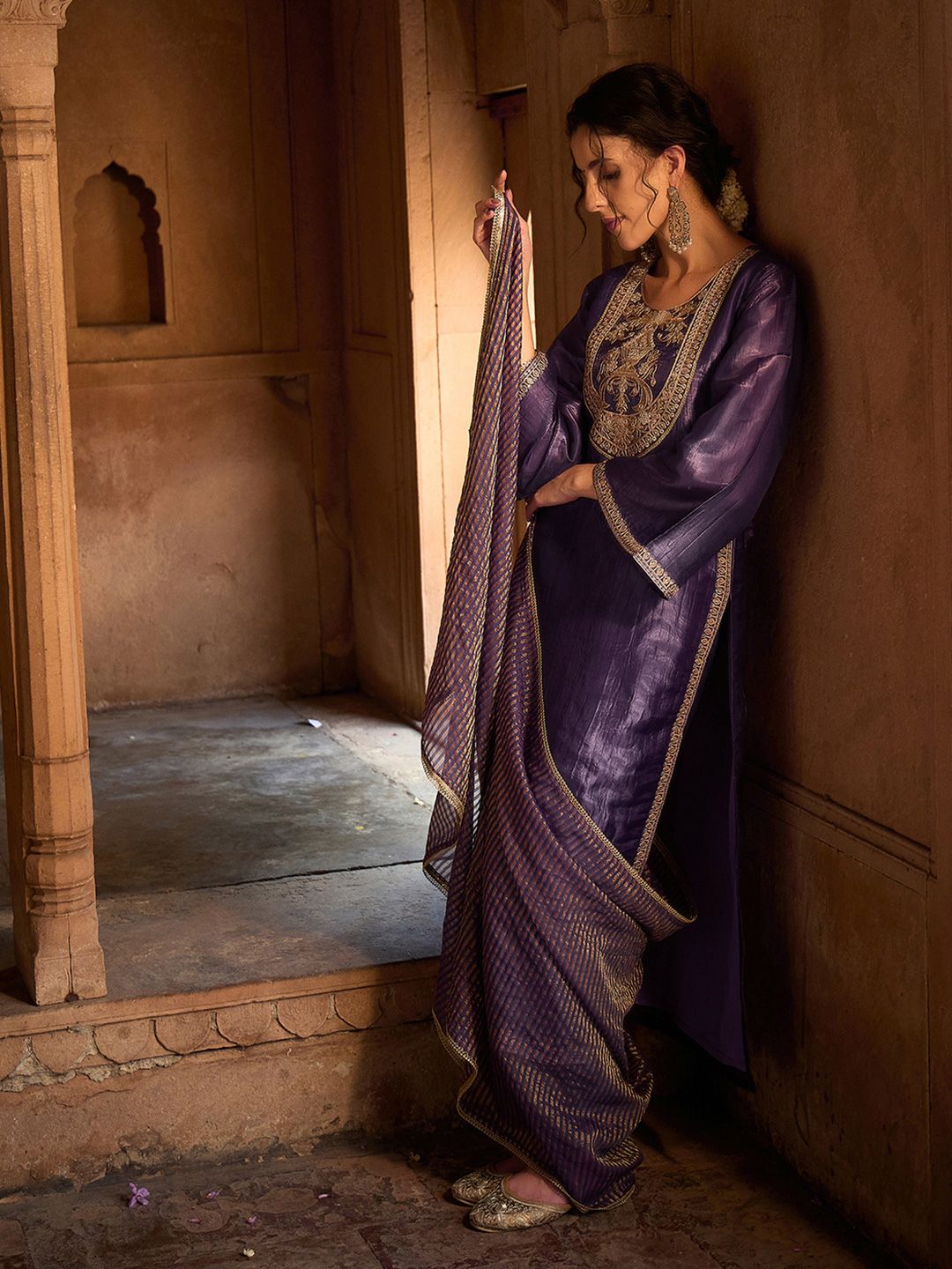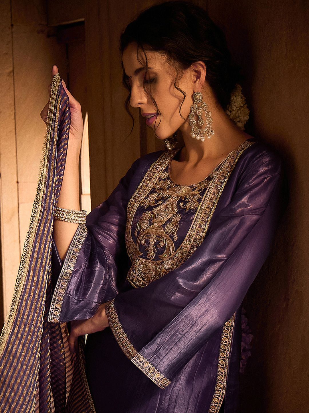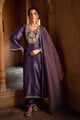 Lavender & Gold Embroidered Kurta with Trousers & Dupatta