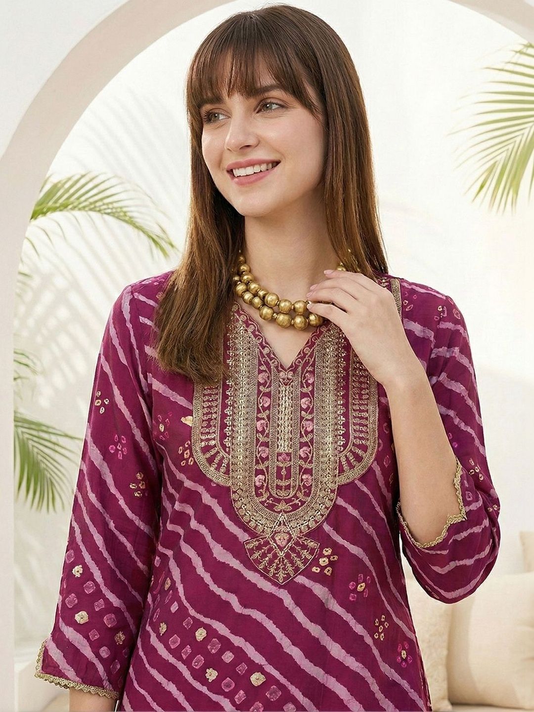Dhiyona CH Women Leheriya Printed Regular Sequinned Kurta with Dhoti Pants