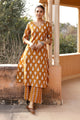 Dhiyona FL Women's Mustard Cotton Printed Straight-Cut Kurta Set