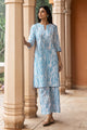 Dhiyona FL Women's Sky Blue Cotton Straight Kurta Set