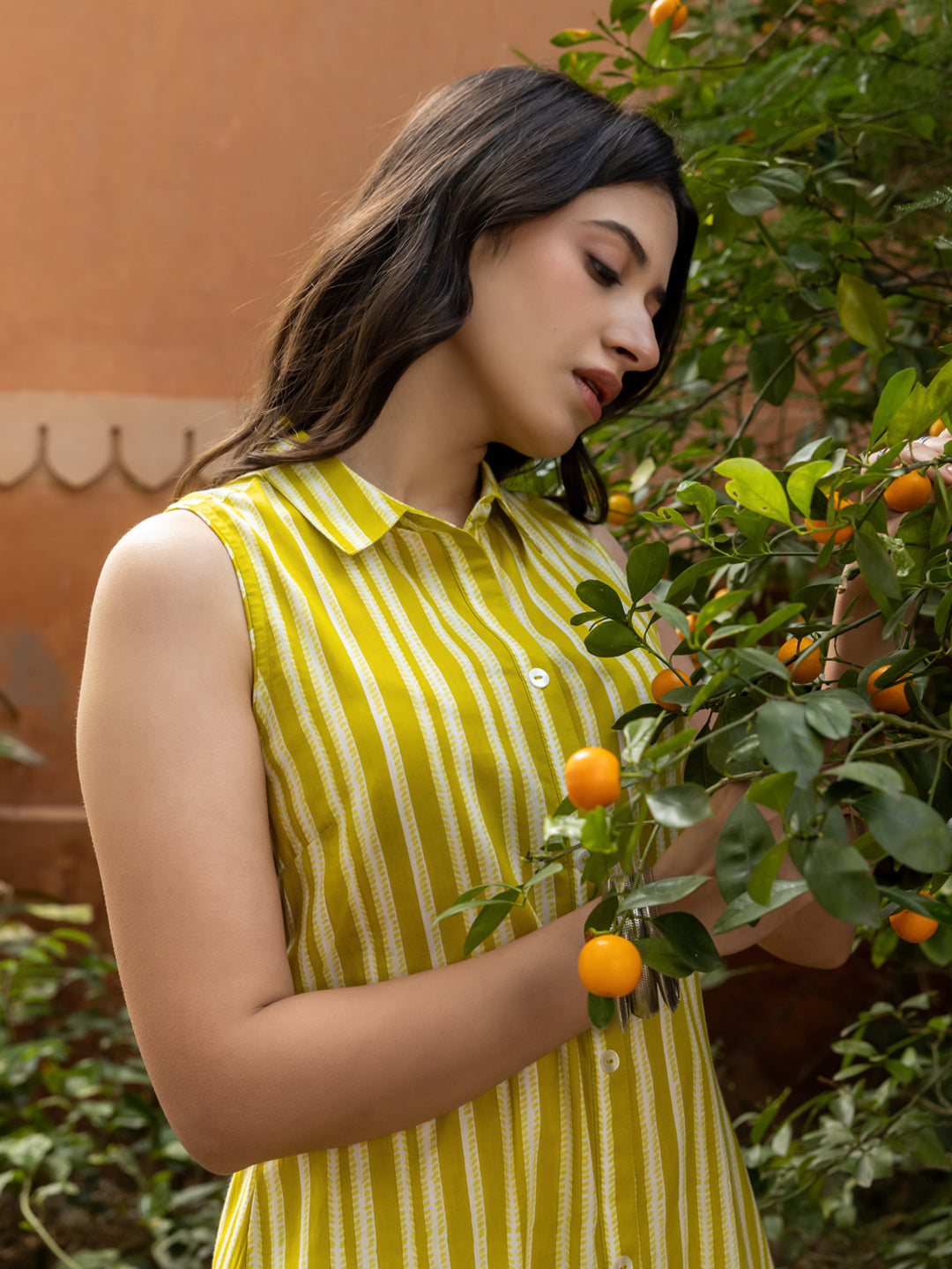 The Dhiyona FL Mustard Yellow Kurta Set is crafted from soft cotton, featuring a stylish striped print. This sleeveless kurta offers a straight-cut design, combining comfort with a modern look. Ideal for casual or semi-formal events, it adds a vibrant touch to your wardrobe. Kurta Material : Cotton || Pant Material : Cotton Style: Straight Kurta || Calf Length with Sleeveless Package contain: Top || Pant