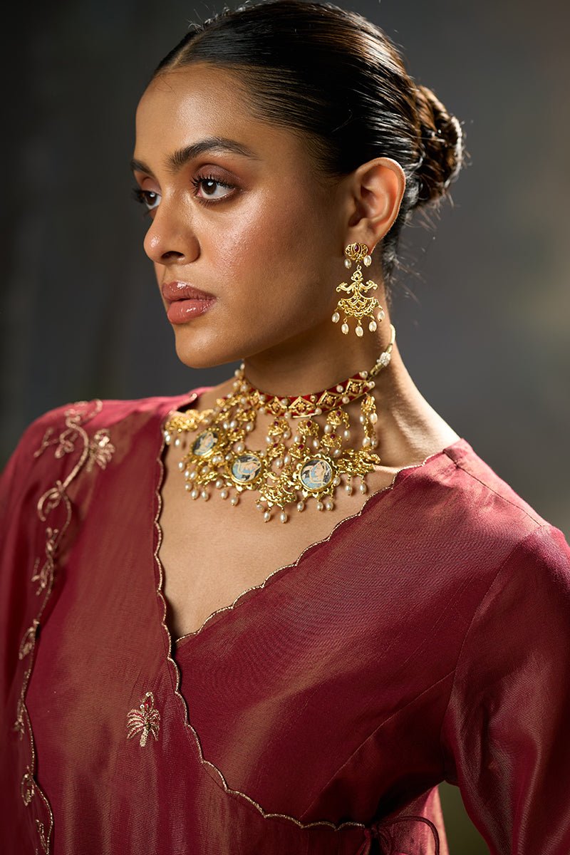 Dhiyona GF rumba red tissue silk angrakha festive kurta set