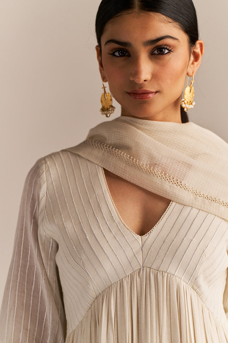 Dhiyona GF Women's Off-White Mul-Mul Anarkali Kurta Set