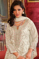 White, Gold, Pink Embroidered Kurta with Palazzos & Dupatta