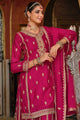 Pink & Beige Embroidered Kurta with Palazzos & Dupatta