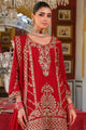 Red & Gold Embroidered Kurta with Palazzos & Dupatta