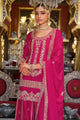 Pink & Gold Embroidered Kurta with Palazzos & Dupatta