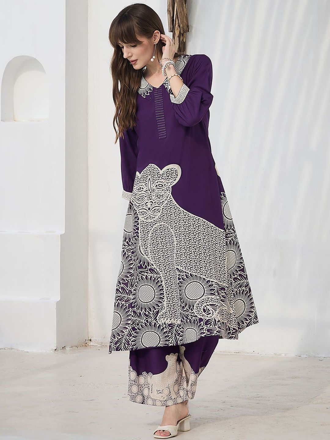 Dhiyona IE Animal Printed Pure Cotton V-Neck Tunic With Trousers